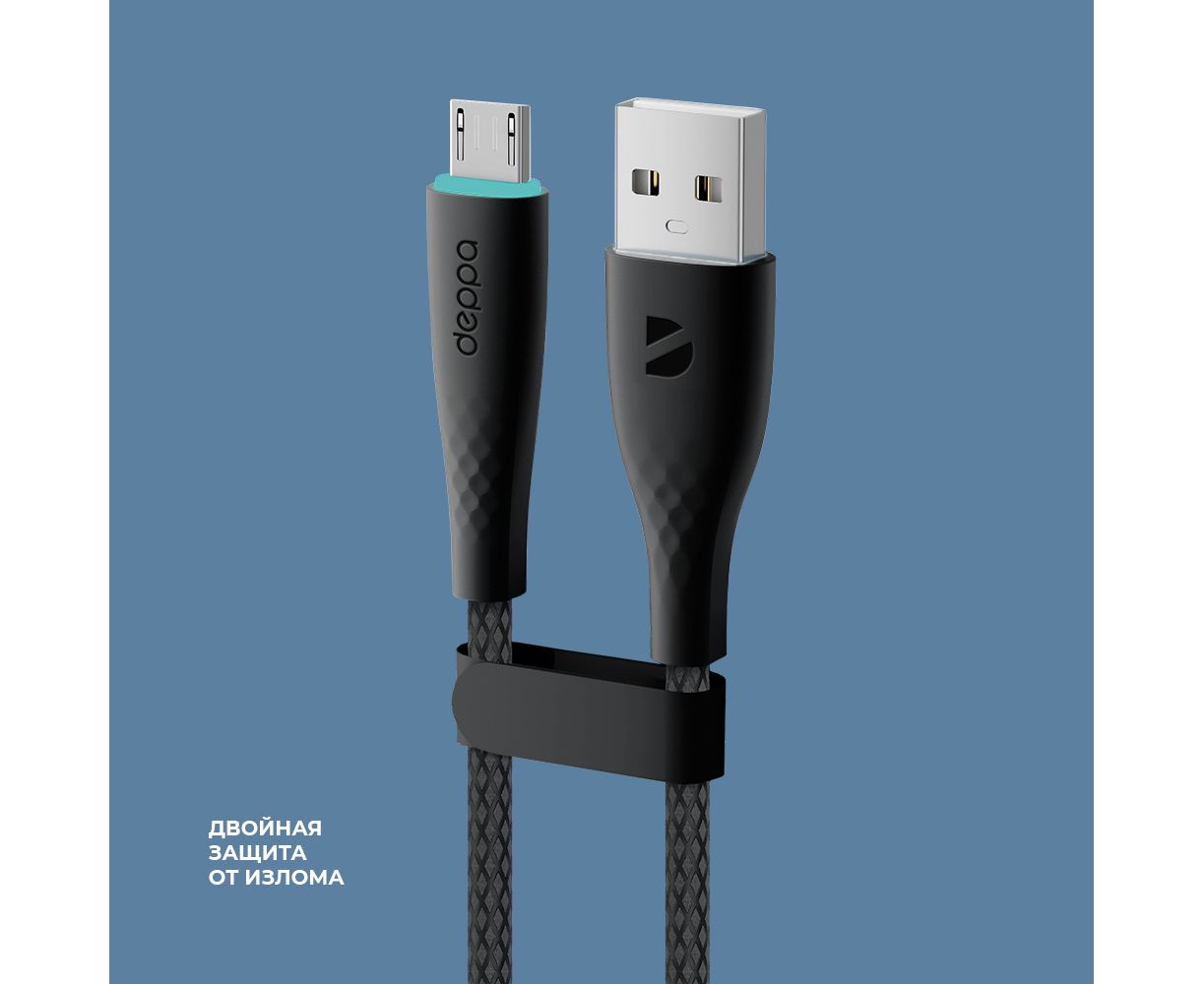 Дата-кабель Fly USB - micro USB, 1м, черный, Deppa