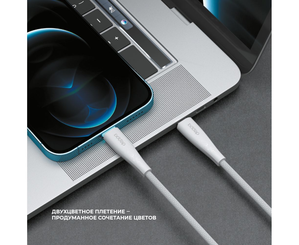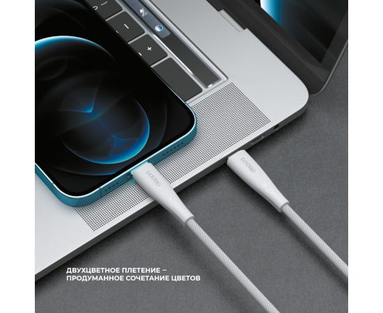 Дата-кабель Fly USB-С - USB-С, 60Вт, 2м, белый, Deppa