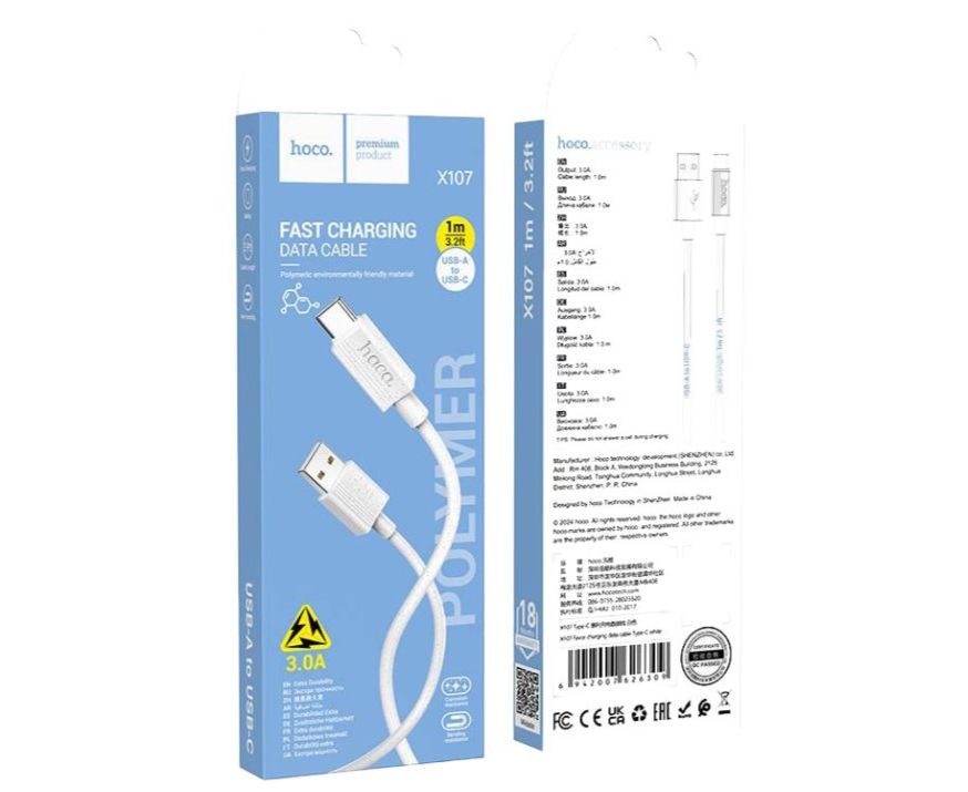 Дата-кабель HOCO X107 Favor charging data cable Type-C (белый)
