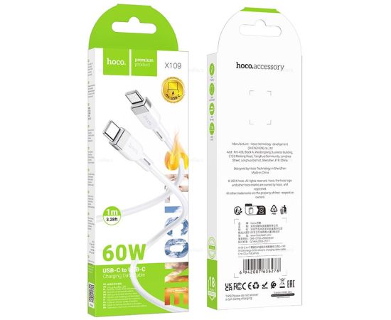 Дата-кабель HOCO X109 Energy 60W silicone charging data cable Type-c to Type-c (L-1M) White
