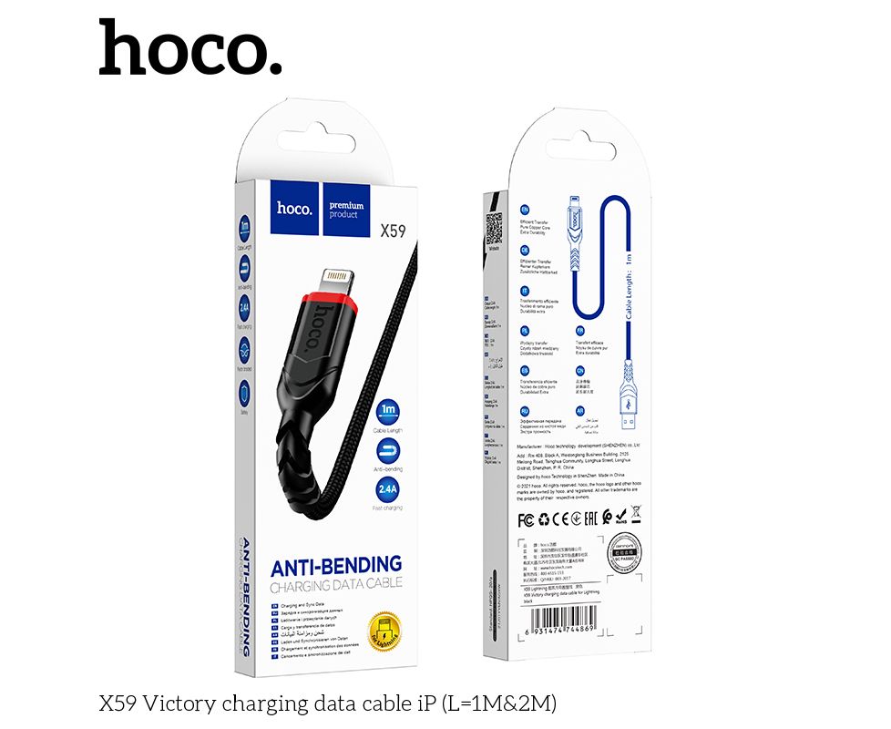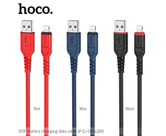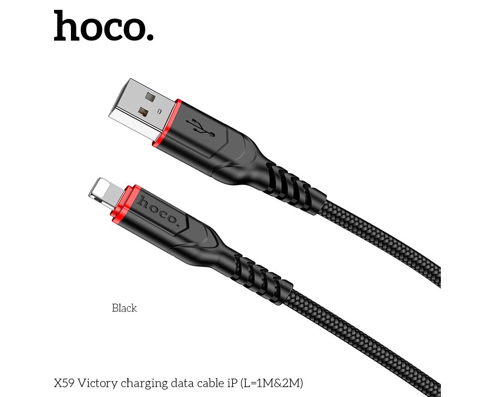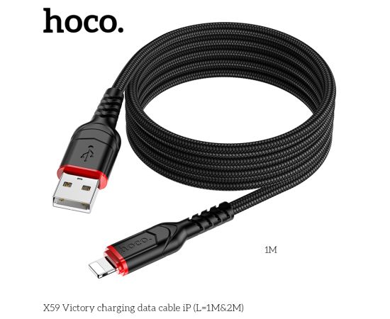 Дата-кабель HOCO X59 Victory charging data cable iP, 2м, (черный)