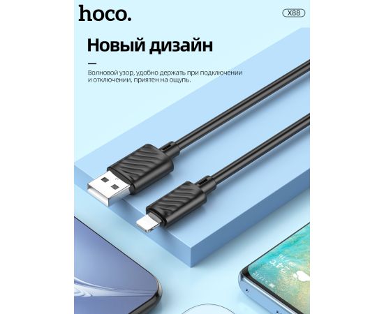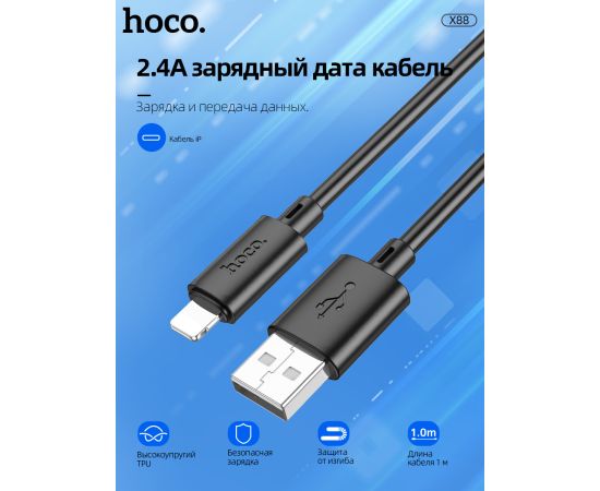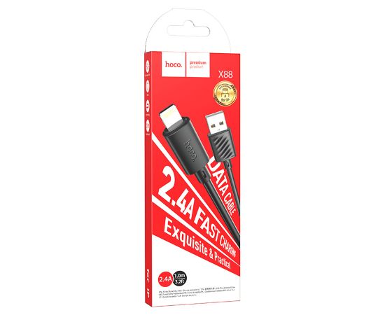 Дата-кабель HOCO X88 Gratified charging data cable for Lightning, 1м (черный)