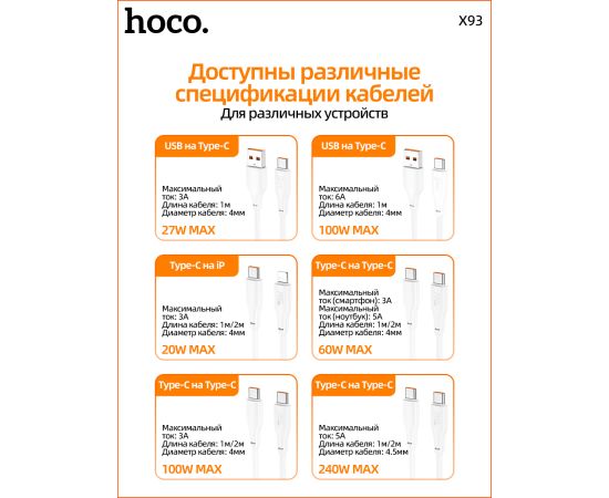 Дата-кабель HOCO X93 Force 27W Type-C 1м (белый)