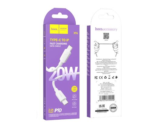 Дата-кабель HOCO X96 Hyper charging Lightning, 1м (белый)