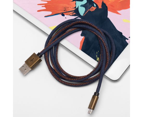 Дата-кабель Jeans USB - micro USB, медь/джинса 1.2м, синий, DEPPA, 72276