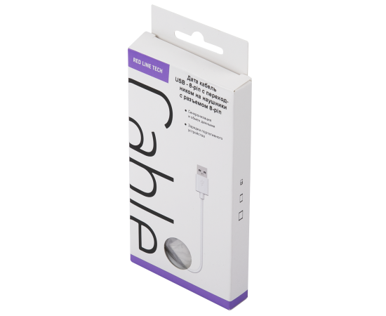 Дата-кабель Red Line USB – 8 - pin с переходником на наушники с разъемом 8 - pin, белый