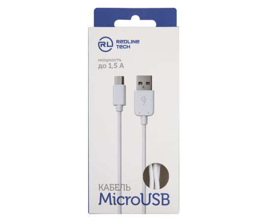 Дата-кабель Red Line USB - micro USB, 1.5А, белый (мягкий футляр)