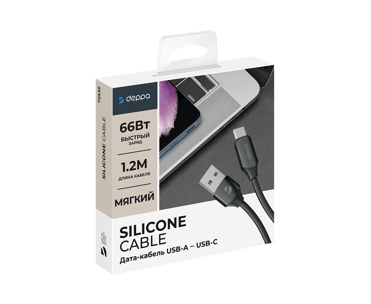Дата-кабель Silk USB - USB-C, 66Вт, 6А, 1,2м, черный, Deppa