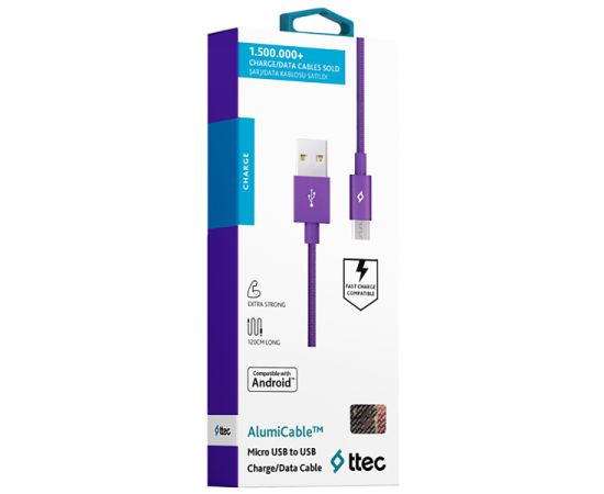 Дата-кабель TEC microUSB 1.0m alum фиолетовый