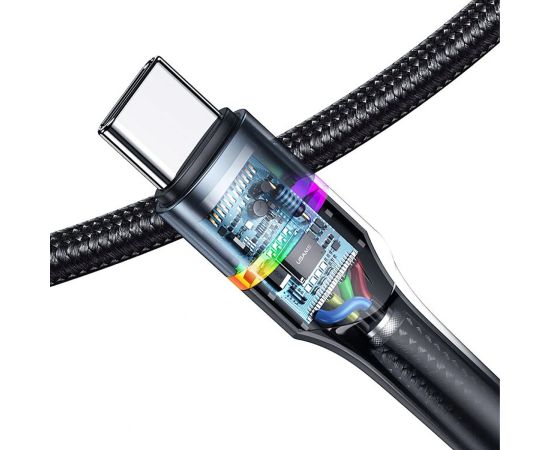Дата-Кабель USAMS US-SJ537 U76 Type-C - Type-C, PD 100W, 5А, подсветка, нейлоновая оплетка, черный (SJ537USB01)