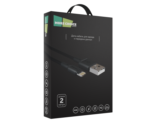 Материал коннектора: металл Наружное покрытие: TPE Спецификация медной проволоки: 40+10*2/0,08 Коннектор: USB - Lightning 8-pin Сила тока: 2.0А. Длина: 2 м Комплектация: дата-кабель, держатель для кабеля, буклет. Цвета: Black, White