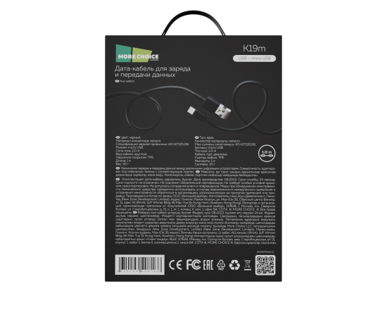 Дата-кабель USB 2.0A для micro USB More choice K19m TPE 1м (Black)