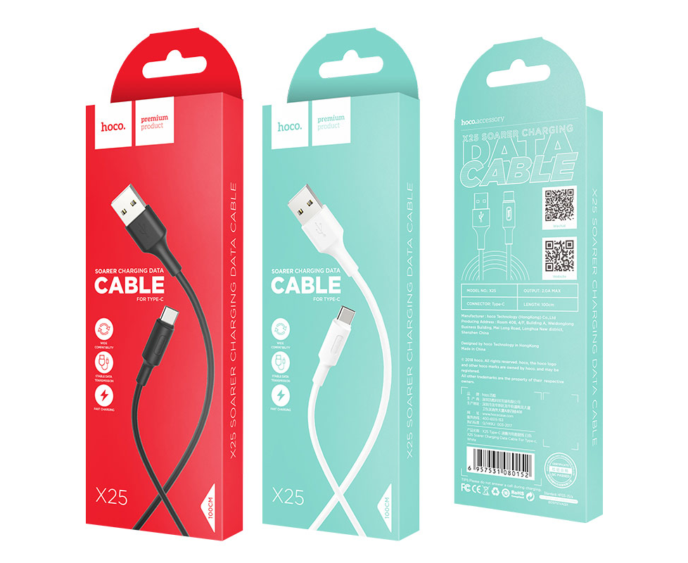 Дата-кабель USB 2.0A для Type-C Hoco X25 TPE 1м (Black)