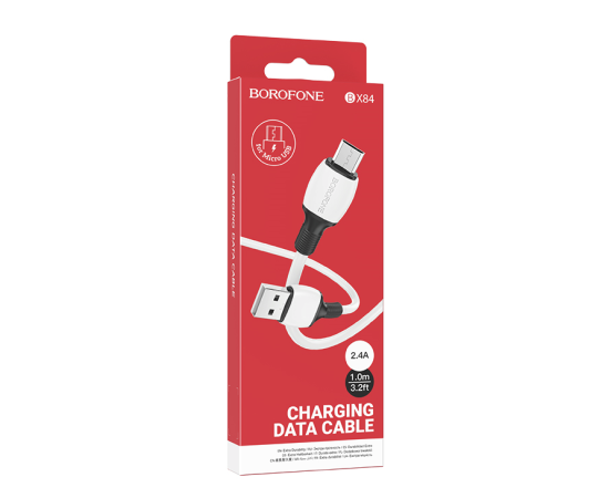Дата-кабель USB 2.4A для micro USB Borofone BX84 ПВХ 1м (White)