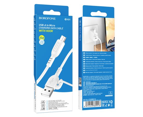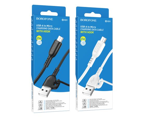 Дата-кабель Borofone BX91 с крючком подойдет для быстрой зарядки телефонов, смартфонов, планшетов и прочих портативных устройств с универсальным разъемом micro USB. Современный протокол позволяет использовать шнур для зарядки и для оперативного переноса данных между устройствами. Длина: 1 метр, вес: 22 г. Выполнен из качественных материалов. Поддержка зарядки током 2.4А.
