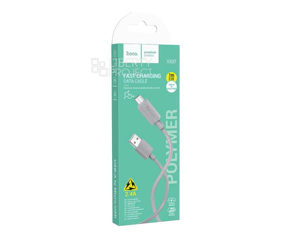 Дата-кабель USB 2.4A для micro USB Hoco X107 ПВХ 1м (Grey)