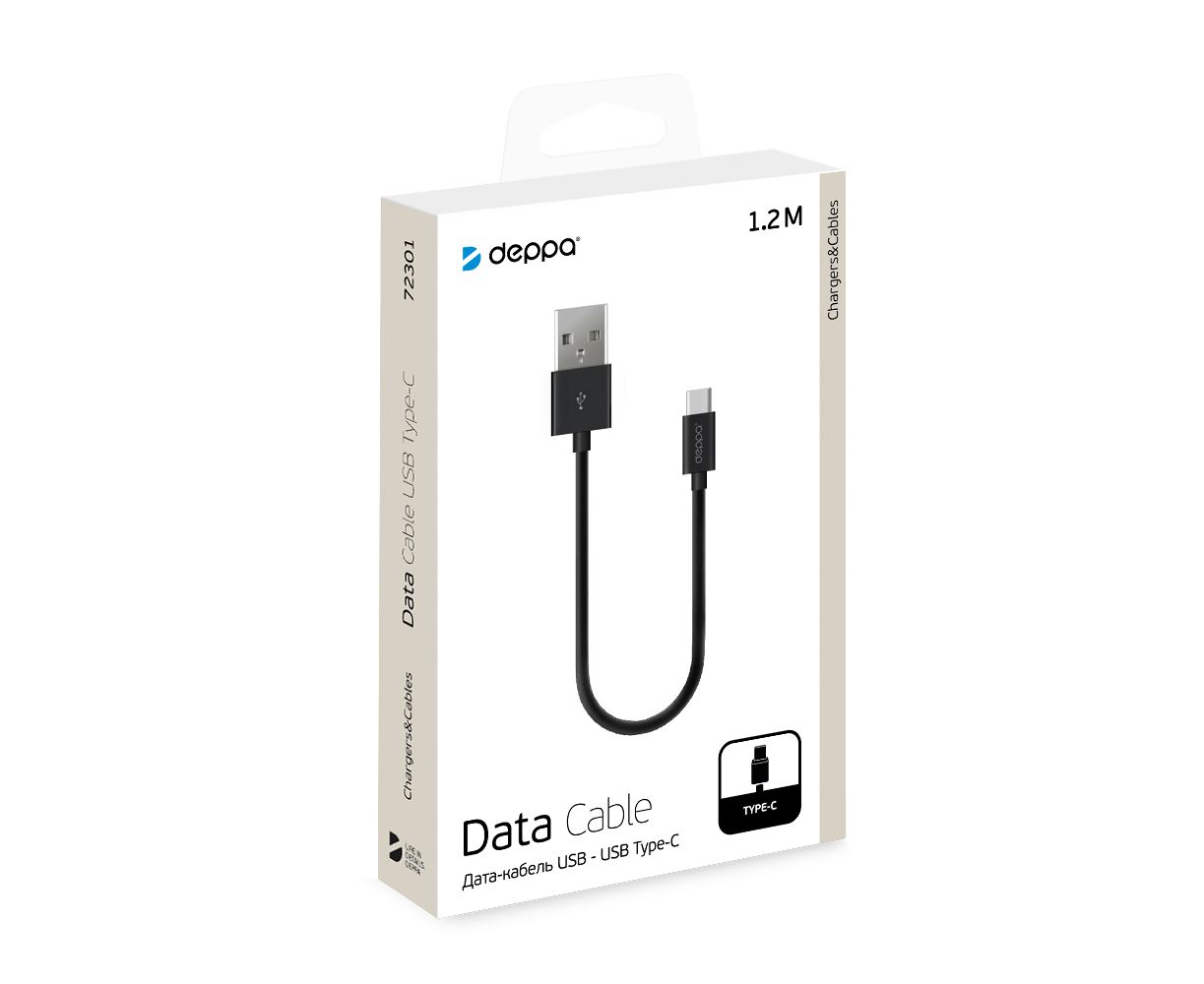 Дата-кабель USB-A - USB-C, USB 2.0, 2.4A, 1.2м, черный, Deppa, 72301