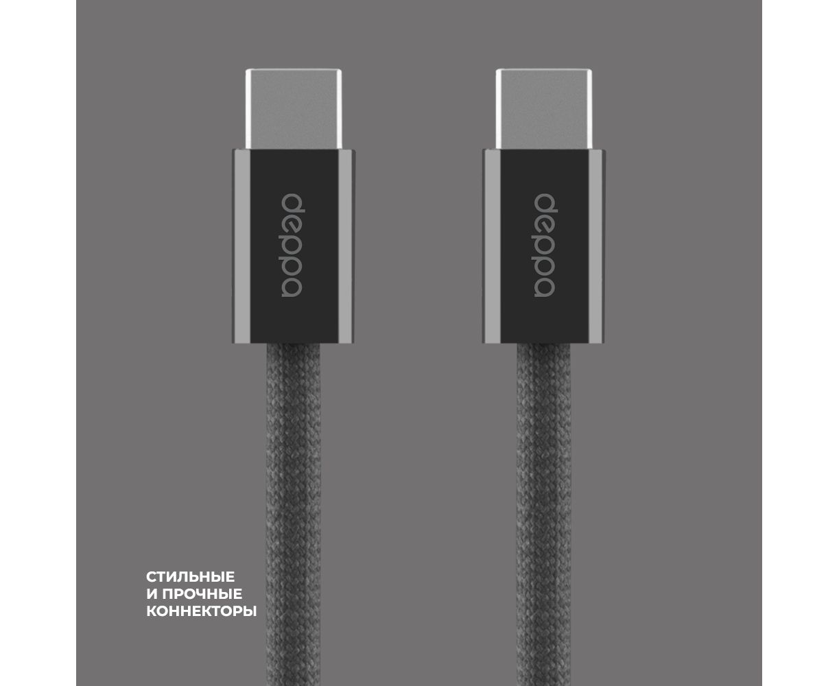 Дата-кабель Zeus, USB-C - USB-C, 1,5м, 5A, USB4, 8k60Hz, черный, Deppa, 72548