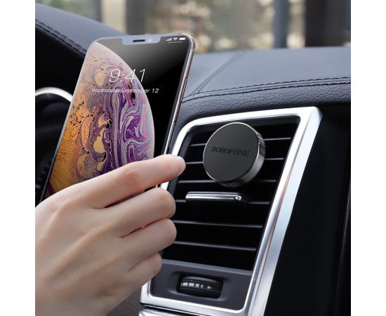 Держатель автомобильный Borofone, BH8, для смартфона, пластик, воздуховод, магнит, цвет: серебряный (1/160)