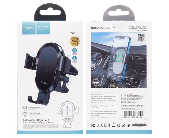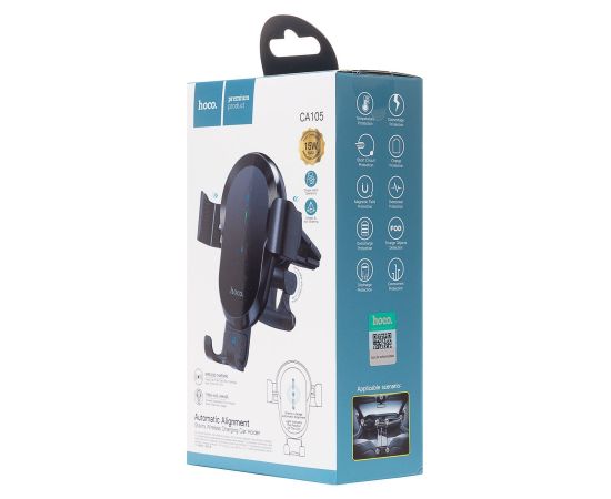 Держатель автомобильный с беспроводной зарядкой Hoco зажим CA105 в дефлектор (black) (207590)