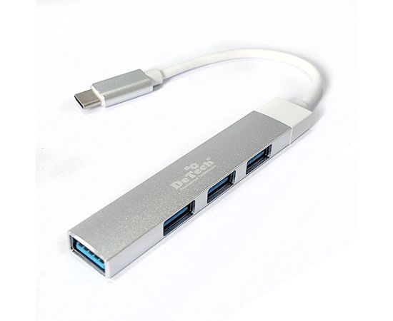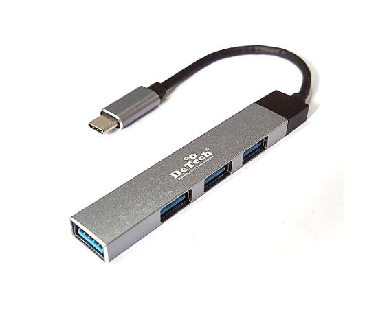 Контроллер DeTech DT-HB370 Type-C на 1xUSB3.0+3xUSB2.0, серый цвет