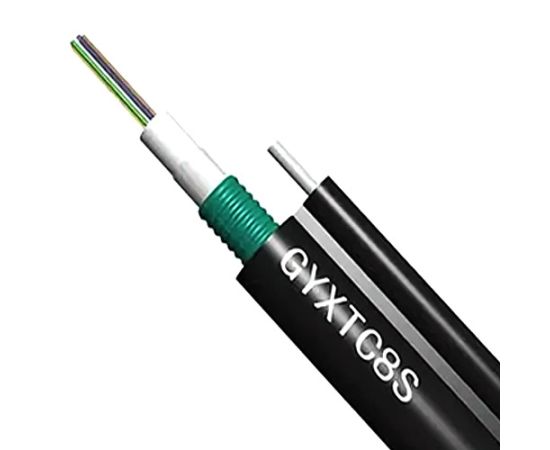Подвесной оптический кабель, предназначен для наружной прокладки между опорами. Применяется в FTTx сетях, а также для прокладки в сетях до рабочих мест или до квартир и офисов абонентов. Кабель содержит 8 оптических волокон, соответствующие стандарту G.652D. Для защиты трубки с волокнами выполнено бронирование стальной лентой. В качестве силового элемента для подвеса используется стальной трос из 7 жил диам. 0,4мм. Внешняя оболочка изготавливается из MDPE (полиэтилен средней плотности). Кабель смотан в бухты по 1000 м на деревянной катушке.