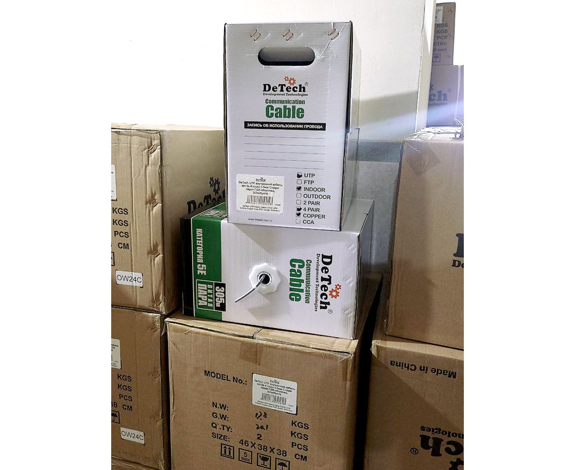 DeTech UTP внутренний кабель кат.5е 4 пары 0.5мм Copper серая ПВХ-оболочка, 305м/бухта