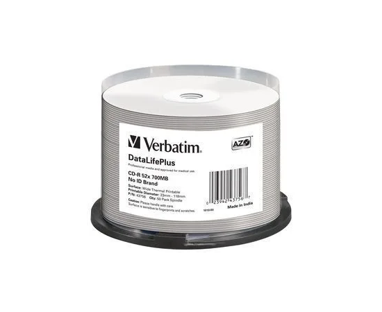 На дисках Verbatim для термопечати можно печатать фотографии высокого разрешения и четкий текст по всей площади с помощью термопринтера. Быстросохнущая поверхность обеспечивает безукоризненно четкое качество печати. Диски для термопечати совместимы с термальными принтерами TEAC P55B & C, Rimage Everest 400 & 600, а также с моделями серии Rimage Prism Plus.
