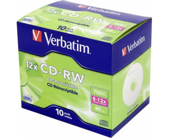Диск CD-RW Verbatim 700Mb 12x Jewel case (10шт) (43148)
