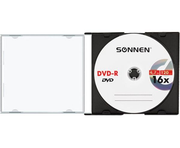 Диск DVD-R SONNEN 512575, 4,7Gb, 16x, Slim Case (1штука)