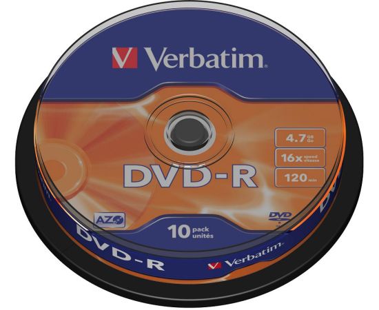 Диск DVD-R Verbatim 4.7Gb 16x Cake Box (10шт) (43523)