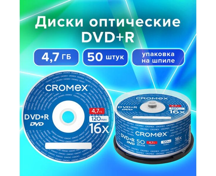 Диск DVD+R CROMEX 513775, 4,7Gb, 16x, Cake Box (упаковка на шпиле) 50шт