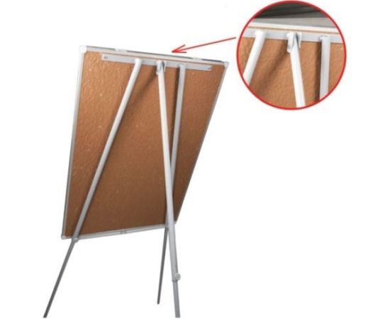 Белое лаковое покрытие предназначено для письма специальными маркерами для белой доски. Размер доски – 100х70 см. Регулируется по высоте до 164 см. Устанавливается на треноге. Металлическая поверхность позволяет размещать объявления при помощи магнитов. Блокнот крепится при помощи неподвижных винтов.