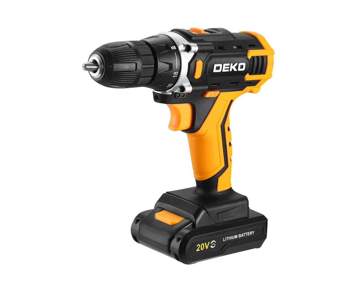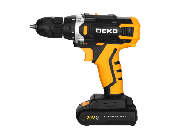 Аккумуляторная дрель-шуруповерт DEKO Banger 20V ONE+, 1x2.0Ah предназначена для строительных, слесарно-монтажных работ. Инструмент помогает быстро высверливать отверстия нужного диаметра как на деревянной, так и металлической поверхности, быстро вкручивать или извлекать крепеж.