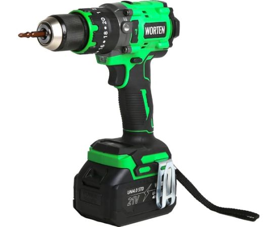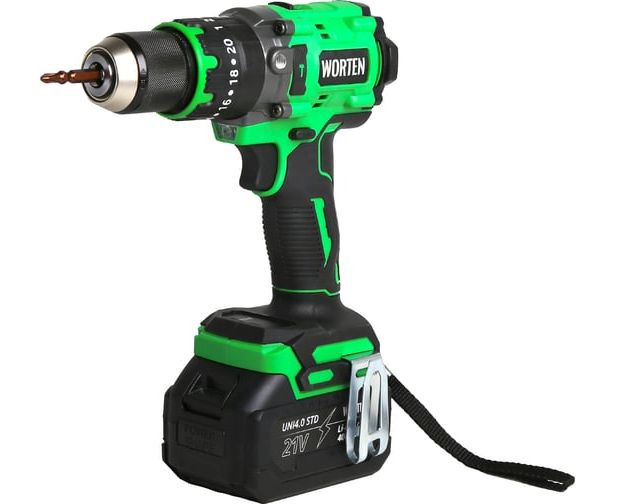 Дрель-шуруповерт WORTEN КА-90000703 ударная бесщеточная в кейсе 150 Нм, 2х4.0Ач+ЗУ, 21В