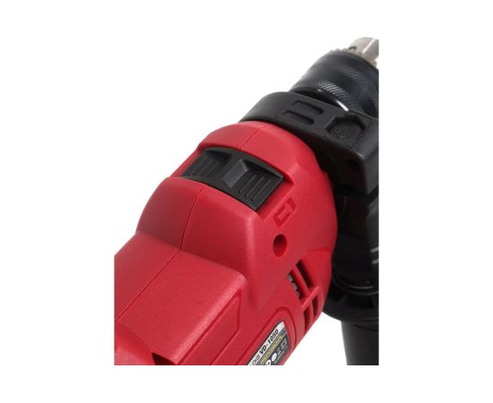 Электродрель оснащена двумя режимами: сверление и удар.