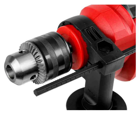 Дрель ударная WORTEX имеет медную обмотку двигателя и металлический сверлильный патрон. Дополнительная рукоятка обеспечивает надежный захват, имеется регулировка скорости, ограничитель глубины, реверс и блокировка кнопки включения.