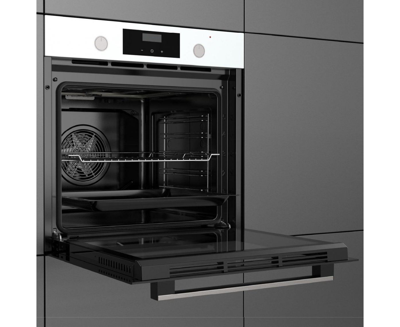 Противень для выпекания в комплекте. Длина сетевого кабеля 1.5 м.