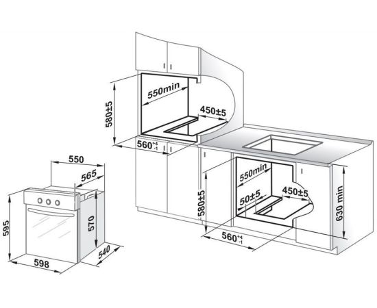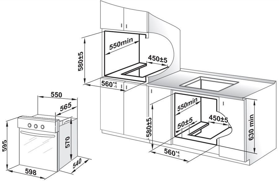 Размеры для встраивания: 56x55x58см