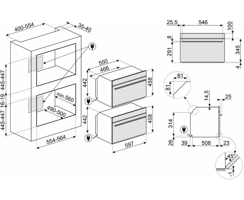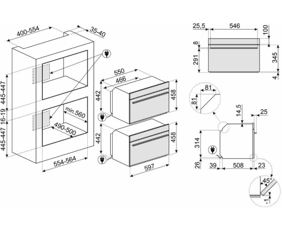 Духовой шкаф SMEG SO4102S3B3 Linea 45см, с паром, паровая очистка, 12 программ, 41л, черный