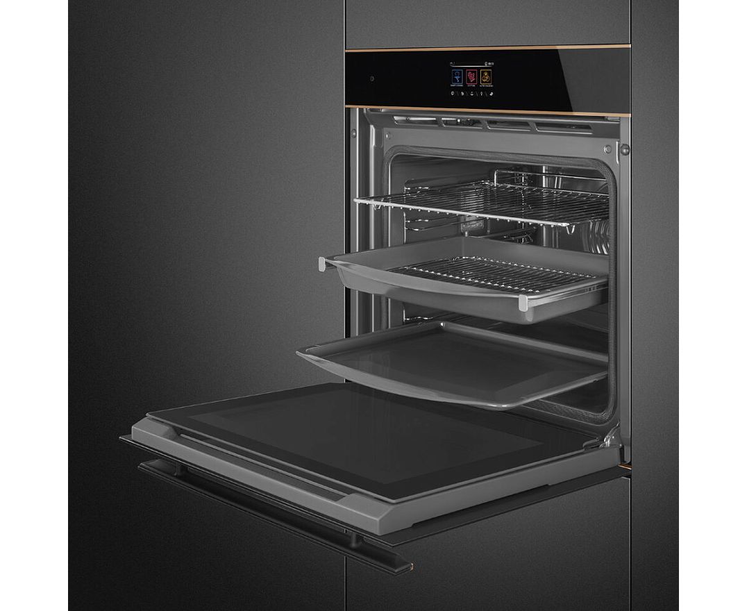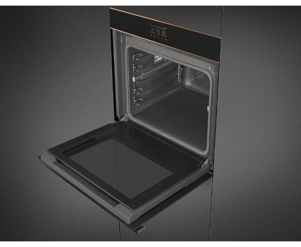 Духовой шкаф SMEG SOP6604TPNR многофункциональный с пиролизом, 60см, 10 функций, чёрное стекло Eclipse, медный профиль