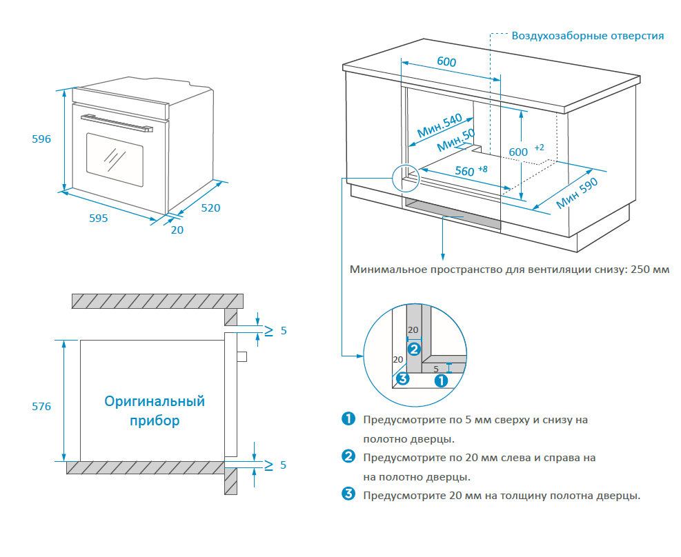 Функции: 4 функции: верхний + нижний нагрев (традиционное приготовление), верхний нагрев, нижний нагрев, подсветка