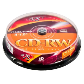 Диск CD-RW VS (VSCDRWCB1001) 700 Mb, 12x, Cake Box (10), (10/200)