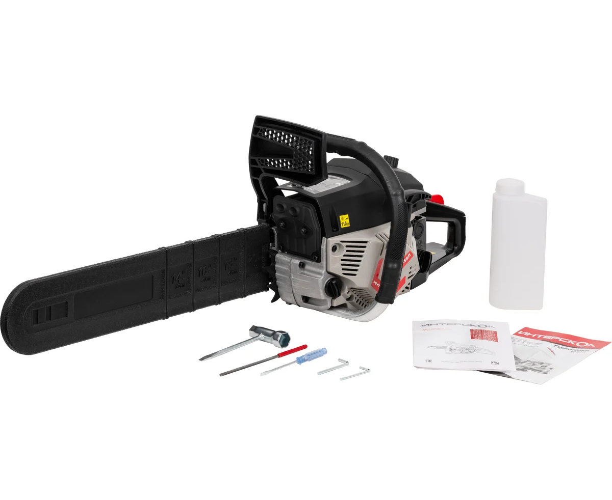 Цепные бензопилы ИНТЕРСКОЛ применяются для пиления древесины при выполнении строительных, садовых, лесохозяйственных и прочих работ, включая распиловку дров, обрезку сучьев и т.д. Устройства предназначены для пользователей с любым уровнем подготовки: садоводов, владельцев загородных домов, фермеров, монтажников, строителей. Предусмотрены все необходимые системы безопасности, а также система легкого запуска двигателя с праймером и удобным ручным стартером. Двухтактный двигатель воздушного охлаждения работает на смеси бензина с октановым числом не ниже АИ-92 и масла для двухтактных двигателей (2Т).