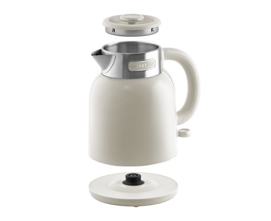 На внутренней стенке чайника имеется метка максимального уровня воды. Подставка с центральным контактом даёт возможность ставить на нее чайник в любом положении, обеспечивая вращение на 360°. Нагревательный элемент у данной модели чайника скрытый и находится в дне. Сверху он закрыт пластиной из нержавеющей стали, которая защищает его от накипи, облегчает уход за ним и снижает шум при нагревании воды.