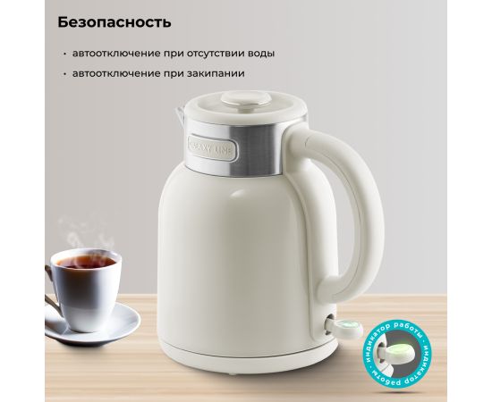 сохраняя воду горячей долгое время. Об этот чайник невозможно обжечься, его не нужно часто подогревать, что обеспечивает безопасность и экономию электроэнергии.
