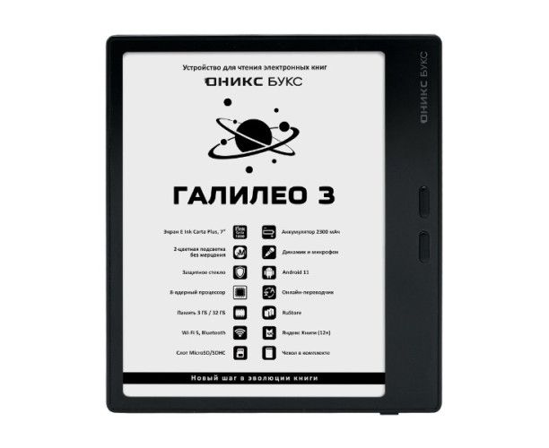 Модель ОНИКС БУКС Галилео 3 может стать оптимальным выбором для тех, кому нужна удобная, лёгкая и функциональная читалка с 7-дюймовым экраном. Это устройство отлично подходит для чтения художественной литературы, но его можно использовать и для просмотра офисных документов, прослушивания аудиокниг и музыки, чтения книг в форматах PDF и DJVU, интернет-серфинга, работы с онлайн-переводчиками и словарями (в том числе прямо в процессе чтения).