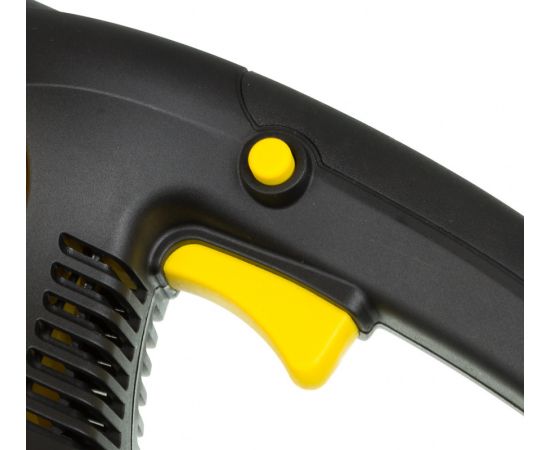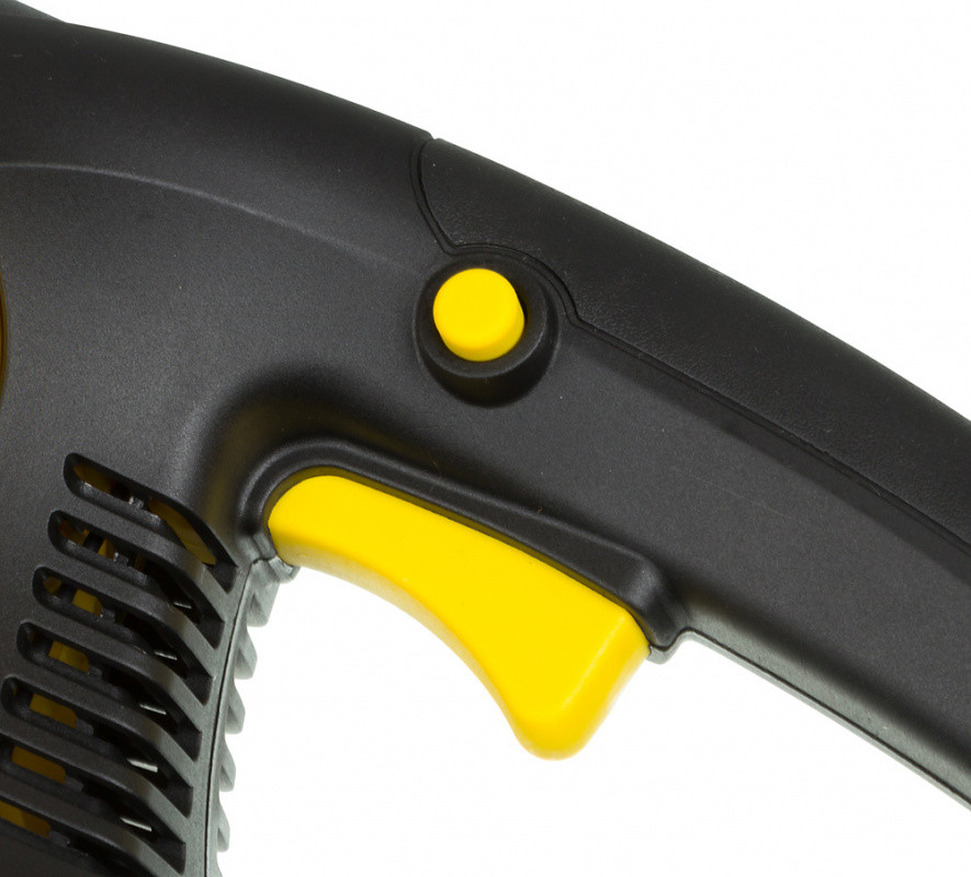 Особенности: Надежное удержание. Удобная задняя рукоятка небольшого размера с пусковым курком жестко сидит в руке, что способствует надежному удержанию электропилы. Безопасность. Автоматический тормоз цепи в виде щитка обеспечивает безопасность работы с электропилой, в первую очередь, защиту ваших рук.
