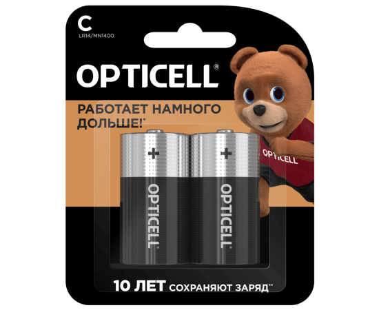 Батарейки базовой линейки Opticell размера С идеально подойдут для устройств, нуждающихся в надежном и мощном источнике питания. Срок хранения до 10 лет, сохраняет заряд пока батарейка не используется при нормальных условиях хранения. Есть защита от протекания. Батарейка не содержит тяжелых металлов.