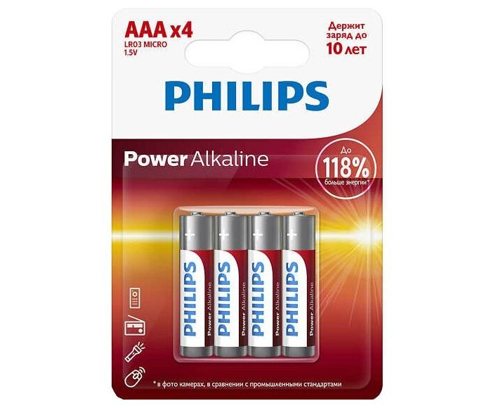 Элемент питания PHILIPS Power LR03 4BL (4/48/144/27648)